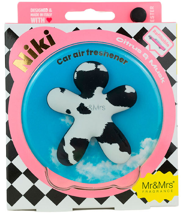 В комплект входит человечек с клипсой для крепления к решетке дефлектора автомобиля и сменный блок из пропитанного аромамаслами EVA-полимера.