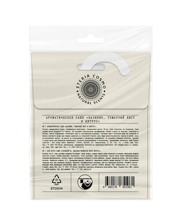 В ассортименте ETERIA COSMO представлены ароматические диффузоры на бесспиртовой гипоаллергенной основе в темных стеклянных бутылочках в аптечном дизайне и крафтовой экологичной упаковке, натуральные аромасвечи из соевого воска в стеклянных баночках.