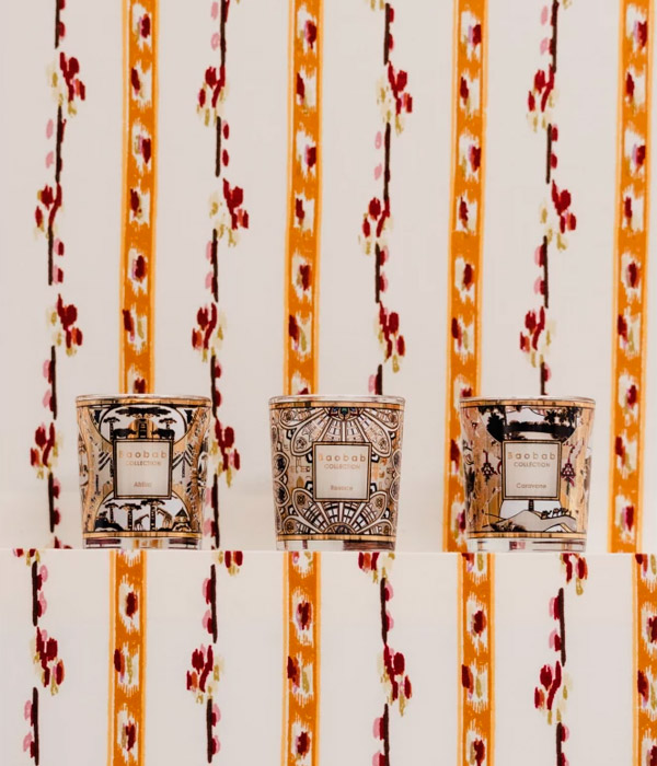 Украшения вдохновлены хитами зимы 2023 и 2024 годов: мини-свечи Afrika и Caravane, а также новая праздничная зимняя мини-свеча, представленная и в большом формате под именем Rosace. В наборе — 3 свечи 80гр.