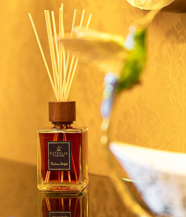 Cashmere Delight с его восточной, мягкой и древесной композицией превращает ваш дом в убежище спокойствия и элегантности. Взаимодействие жасмина, пачули, ванили и белого мускуса создает гармоничную ольфакторную симфонию, которая приглашает вас расслабиться и насладиться роскошной атмосферой, царящей в вашем пространстве.