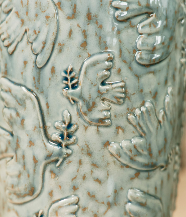 Образ голубя — древний знак мира и надежды — оживает в португальской керамике. Каждая форма рождена руками мастеров: из глины проступают летящие силуэты, словно застывшие в нежном рельефе. Матовые и глянцевые грани перекликаются в тонкой игре света, даря изделиям спокойную, почти одушевлённую скульптурность.