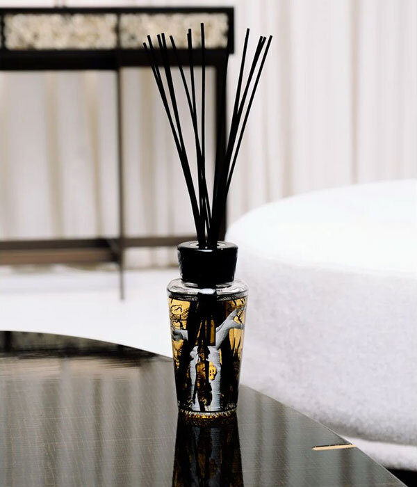 Ароматический диффузор Feathers покрыт фреской Янна Лежандра, которая иллюстрирует мальчика, воплощающего эту коллекцию.
