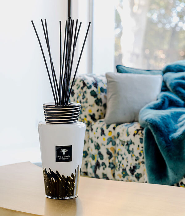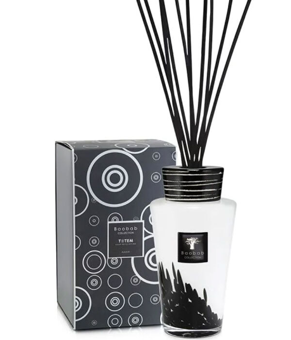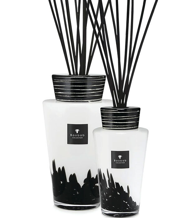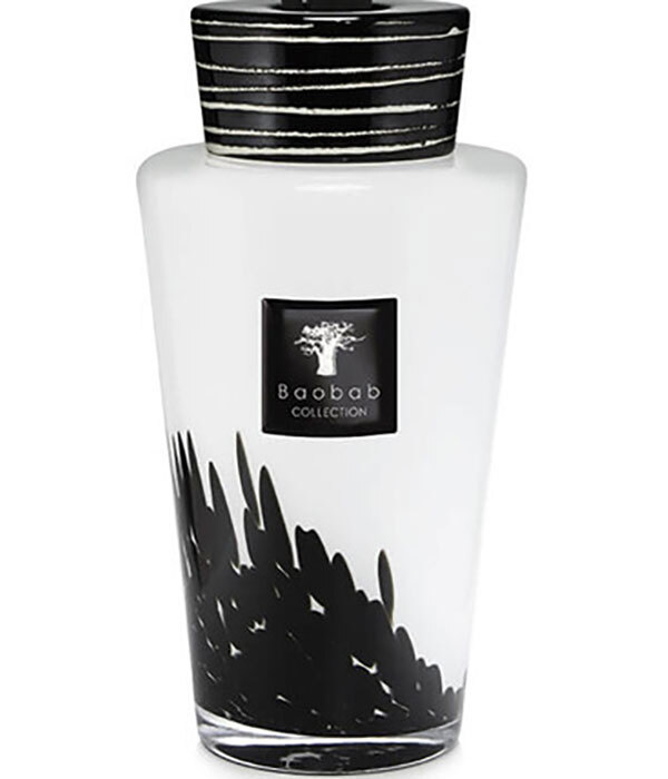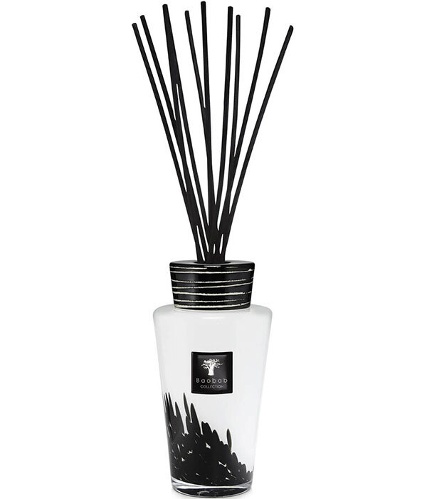 Флакон ароматического диффузора Totem Feathers демонстрирует мастерство наших мастеров по стеклу, которые произвольно вставили черные детали конфетти в матовое белое стекло ручной выдувки, чтобы создать эффект перьев.