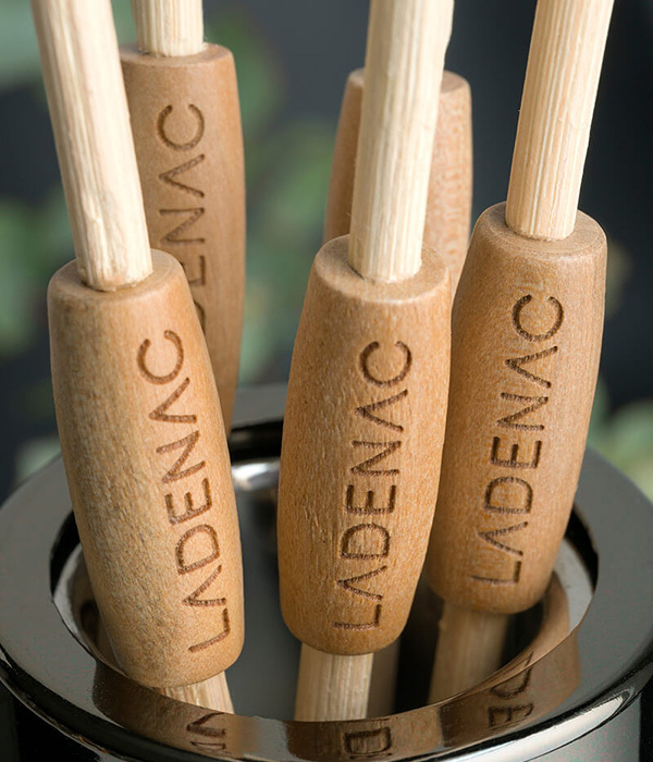 Палочки из ротанга с высокой впитывающей способностью снабжены деревянным стержнем для их соединения, что придает им жесткость и, таким образом, оптимизирует распространение аромата.