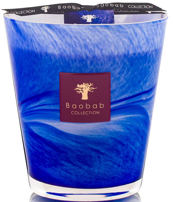 Синий цвет, отраженный в стекле этой свечи, на котором тонко проступает сливовый воск.