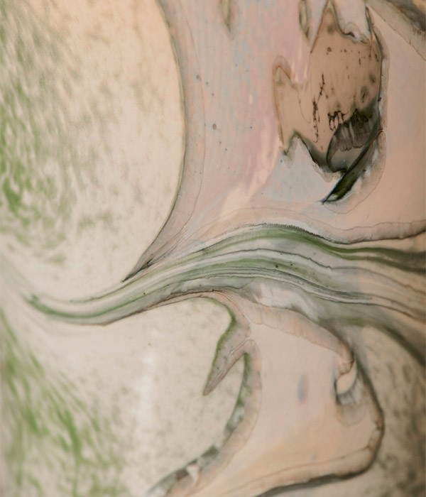 Облачённая в выдувное стекло небесно-голубого и селадоно-зелёного тонов, свеча Marius являет кружащиеся узоры, что вспыхивают под язычком пламени, словно солнечный свет, сочащийся сквозь листву прованских оливковых рощ.