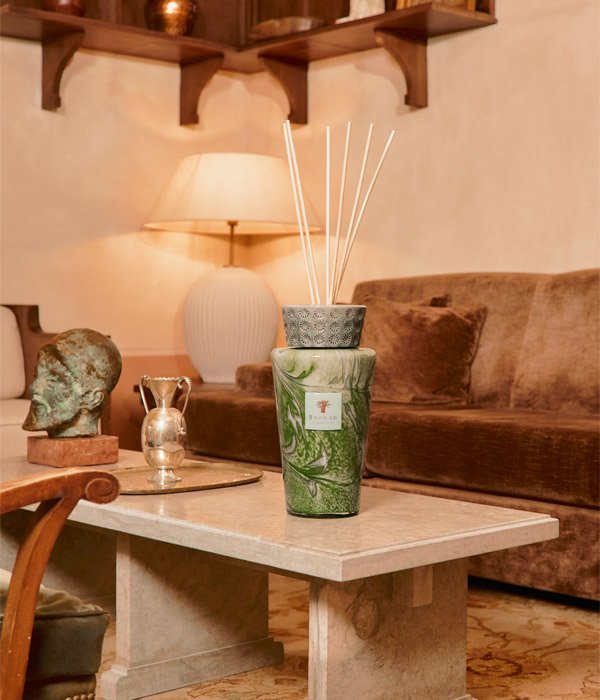 Выполненный в технике выдувания из стекла небесно-голубого и селадоно-зелёного оттенков, тотем Marius раскрывает причудливые узоры, которые загораются под пламенем, словно свет, проникающий сквозь провансальские оливковые рощи.