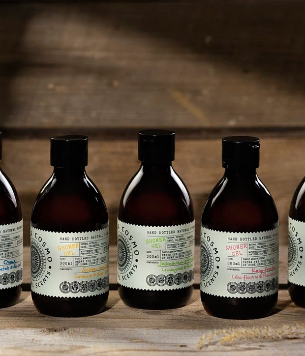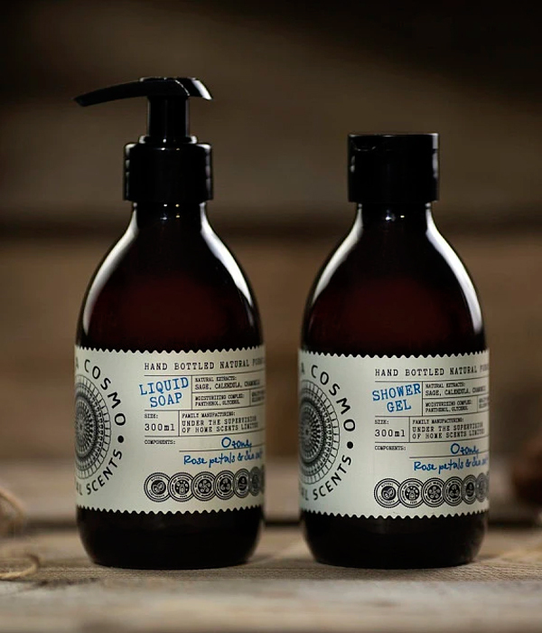 В ассортименте ETERIA COSMO представлены ароматические диффузоры на бесспиртовой гипоаллергенной основе в темных стеклянных бутылочках в аптечном дизайне и крафтовой экологичной упаковке, натуральные аромасвечи из соевого воска в стеклянных баночках, крафтовые ароматические саше из природной минеральной пудры, а также натуральные косметические средства для увлажнения и смягчения кожи рук и тела – жидкое мыло с активными увлажняющими компонентами, гели для душа без SLS и парабенов.