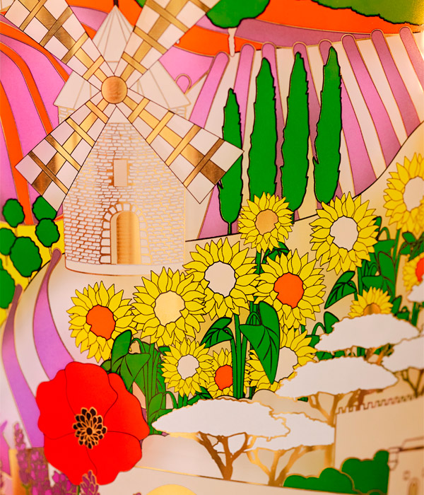 Вдохновлённая живым, искрящимся видением Дэвида Хокни, коллекция Provence превращает пейзажи Юга в радостную, переливающуюся красками мозаику. Лучезарное путешествие, в котором искусство, ландшафт и аромат становятся единым целым.