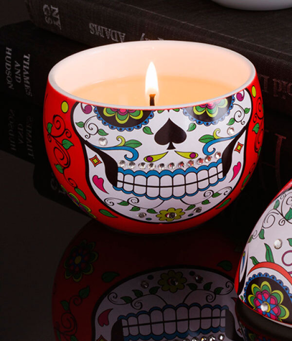 Ощущения, которые напоминают и побуждают вас жить, наслаждаться моментом, настоящим, представлены в этой аромасвече, дизайн которой вдохновлен культовым мексиканским черепом "Ла Катрина": бессмертный, улыбающийся, одетый в разные цвета, а букеты и перья сочетают элементы доколумбовой и испаноязычной культуры и традиций.