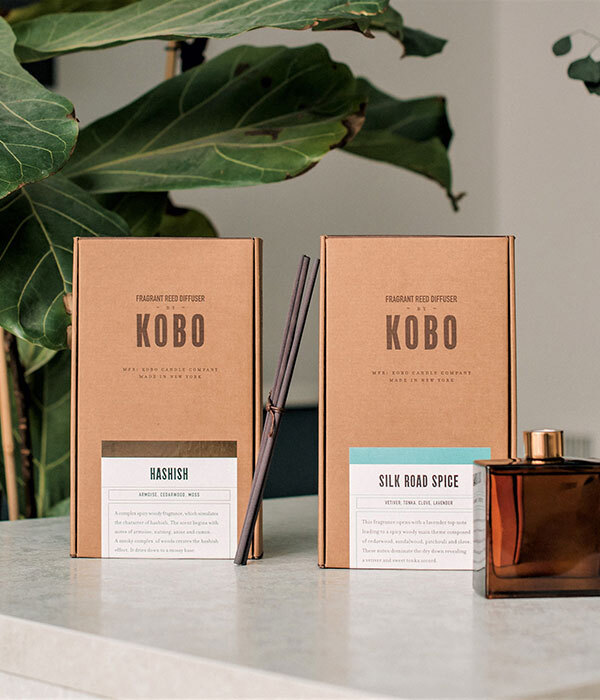 Диффузор KOBO Candles на 100% состоит из аромамасел, а значит он будет радовать вас дольше обычного. Он упакован в роскошную коробку, внутри – стеклянная бутыль и палочки из фибры: этот материал особенно хорошо впитывает аромат.