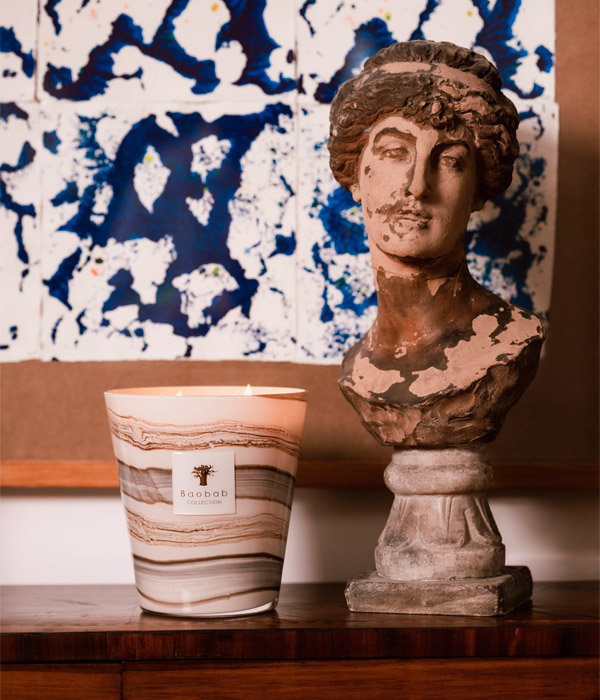 Образы, воплощенные в стекле свечи Sonora, напоминают бескрайние южноамериканские пустыни, где глаз теряется в органических цветах, что стало бессознательным источником вдохновения при создании этой линейки.