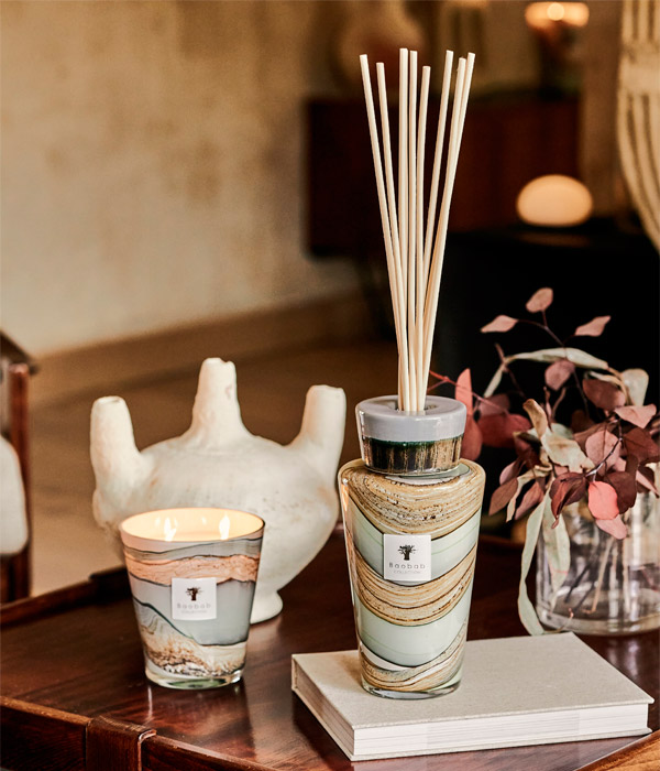 Образы, воплощенные в стекле свечи Sonora, напоминают бескрайние южноамериканские пустыни, где глаз теряется в органических цветах, что стало бессознательным источником вдохновения при создании этой линейки.