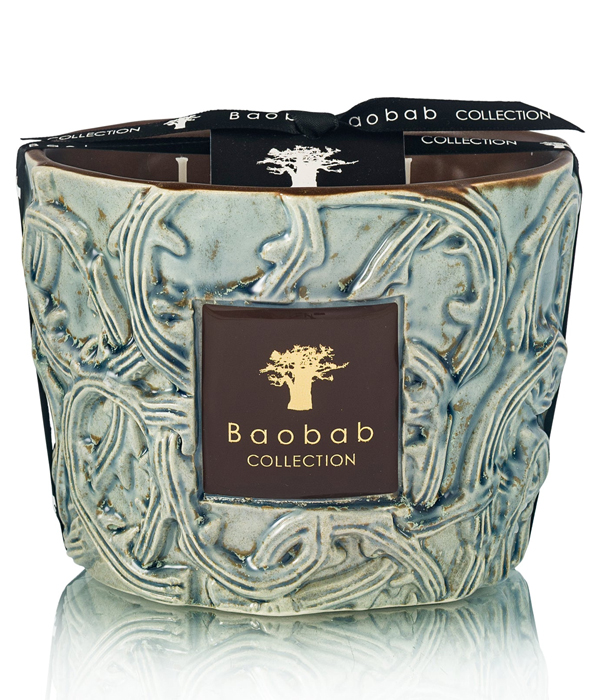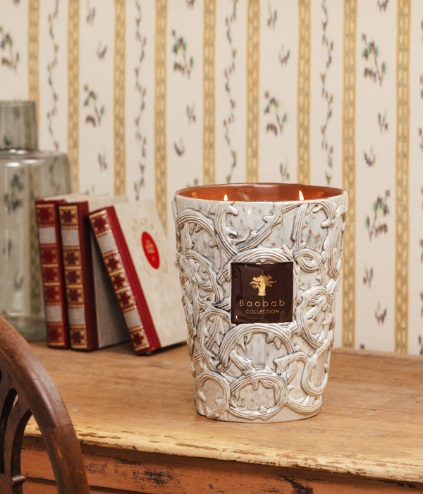 Изготовленная вручную в Португалии керамистами высочайшего мастерства, свеча покрыта селадоново-зелёной глазурью с тонкими отблесками, напоминающей свежесть дерева. Внутренняя часть свечи покрыта матовой шоколадной глазурью, соответствующей этикетке. Керамическая поверхность, украшенная приподнятыми оленьими рогами, – настоящий символ дикого благородства и обновления.