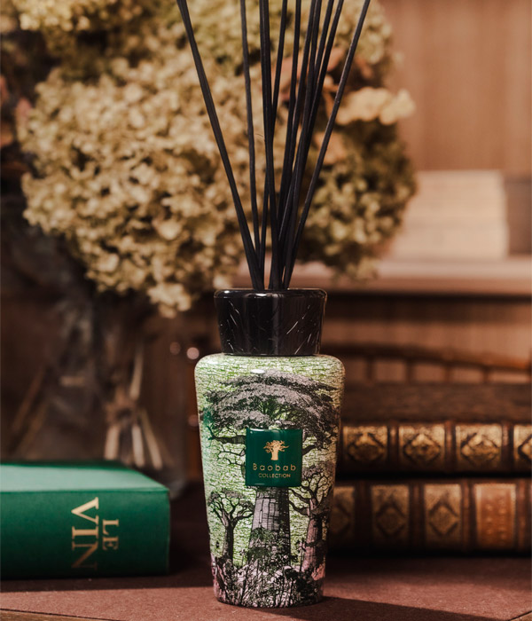 Диффузор для аромата Touba украшен сублимационной печатью с изображением величественных баобабов, созданной мастерской Uniwax. Ольфакторный опыт, который дарит диффузор, дополняет впечатление от ароматической свечи, даря интерьеру медленное и изысканное благоухание. Цитрусовый аромат диффузора Touba оставляет за собой шлейф свежих, пряно-травянистых нот вербены.